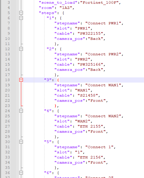 Im Zuge einer Kundenanfrage bezüglich digitalem Support für die Installation einiger IT- Geräte konnte ich ein Konzept entwickeln um lineare, aber auch nicht-lineare Handlungsanweisungen verfügbar zu machen. Die Anweisungen/Informationen werden in Textform (Quasi Drehbuch mit bestimmter Struktur) erstellt und vom Programm eingelesen und dargestellt. In diesem Fall ist der Kontext recht simpel und die Informationen handeln davon, welches Kabel in welchen Slot gesteckt werden muss. Ebenfalls zeigt ein interaktiver POI (roter pulsierender Würfel) wo gerade der Fokus liegt und worauf geachtet werden soll. Der Ort des POIs und auch der Kameraort werden ebenfalls im Drehbuch bestimmt.