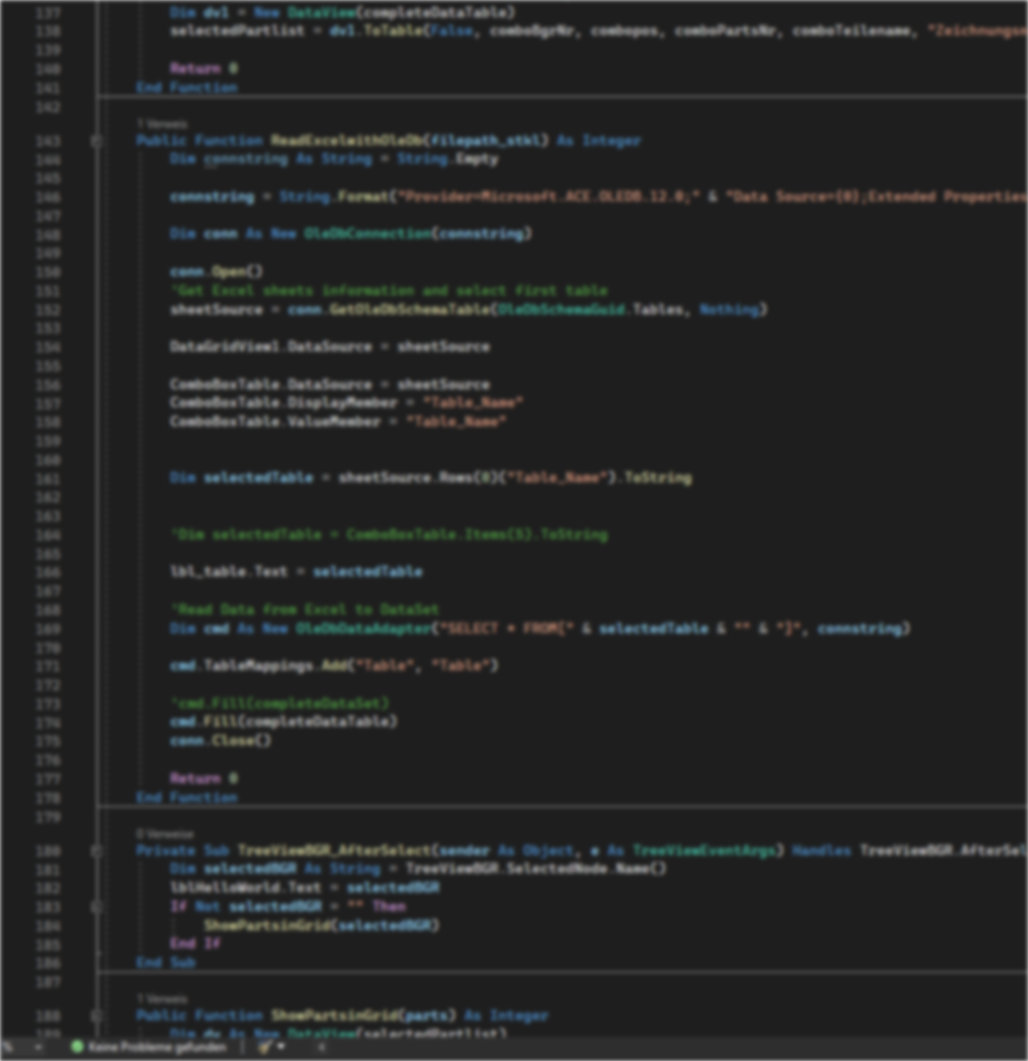Geplant ist ein kleines und unklompiziertes Programm welches direkt xls Stücklistentabellen auslesen kann. Die Struktur einer Baugruppe/Maschine soll als Baumstruktur dargestellt, sowie dazugehörige Dokumente anzeigt werden.
