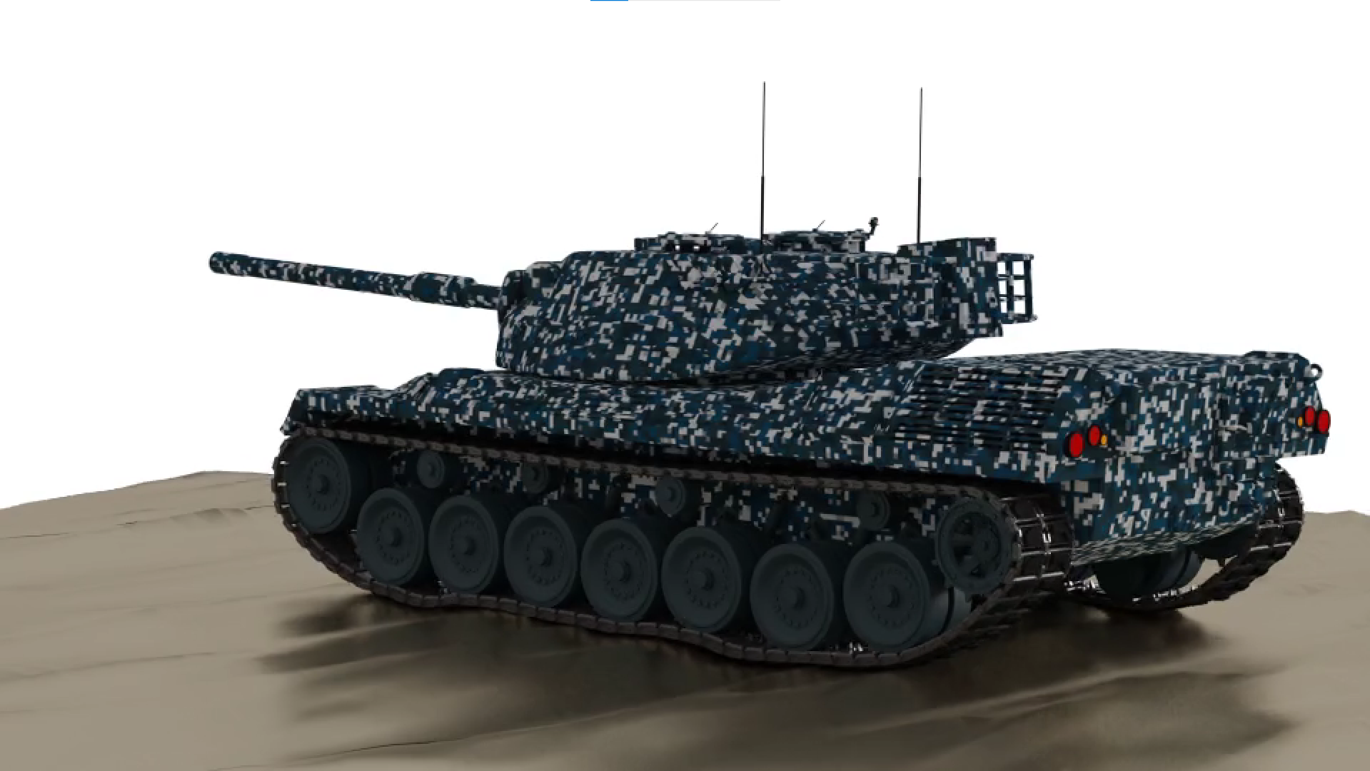 Ein in Blender manipuliertes und gerendertes Panzermodell. Die Ketten und einzelnen Laufräder reagieren auf die Unebenheiten des Bodens.